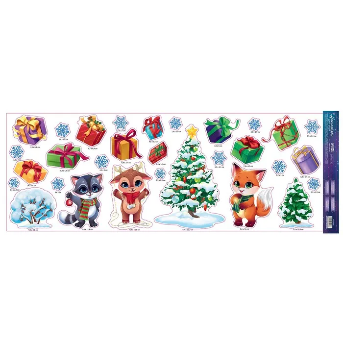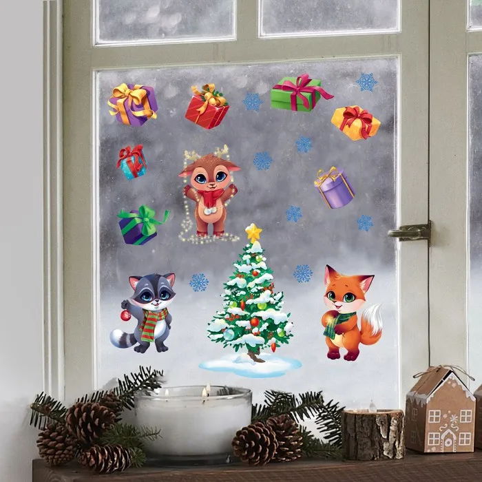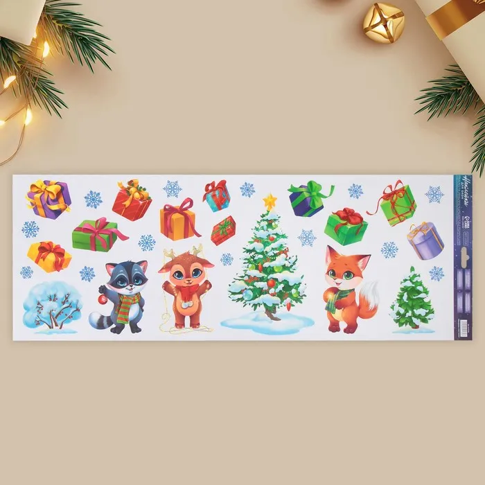 Наклейки новогодние на окна, виниловые «Новогодний праздник», многоразовые, 70 х 25 см — Характеристики