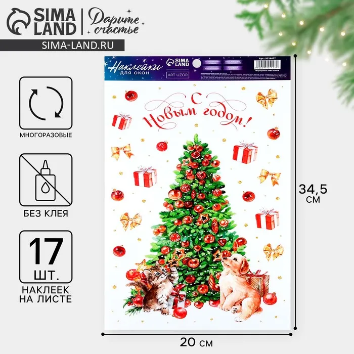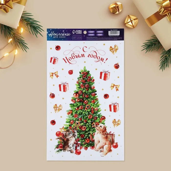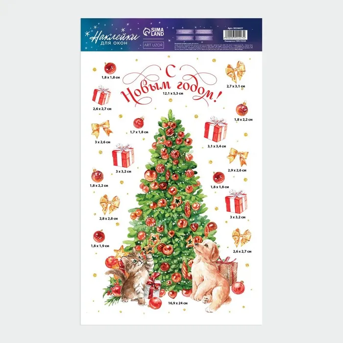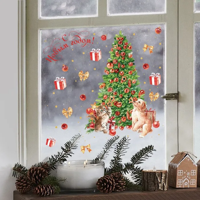 Наклейки новогодние на окна, виниловые «Новый год», многоразовые, 20 х 34,5 см — Характеристики