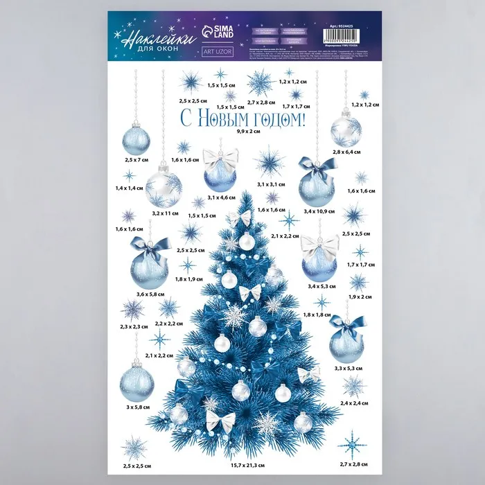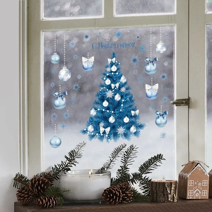 Наклейки новогодние на окна, виниловые «Праздник», многоразовые, 20 х 34.5 см — Характеристики