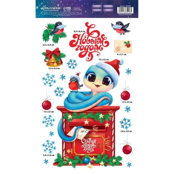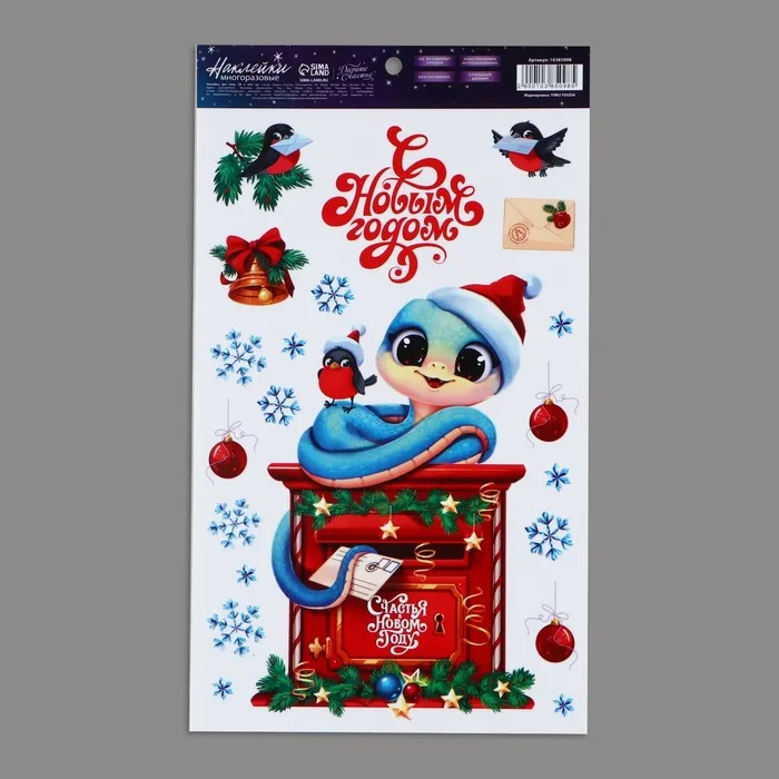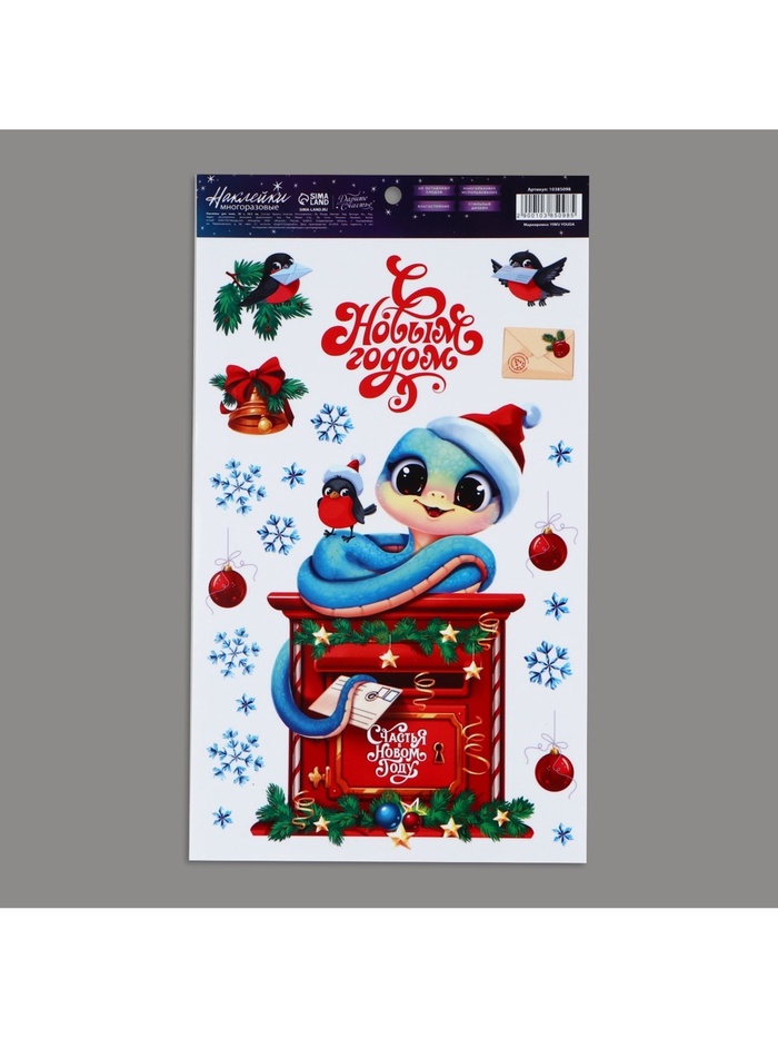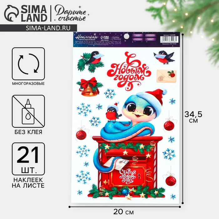 Наклейки новогодние на окна, виниловые «С новым годом», многоразовые, 20×34.5 см — Характеристики