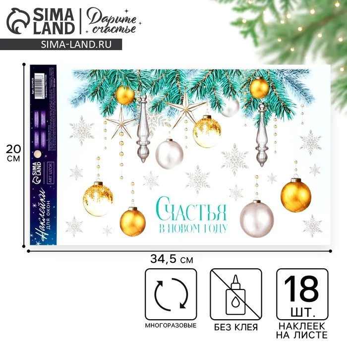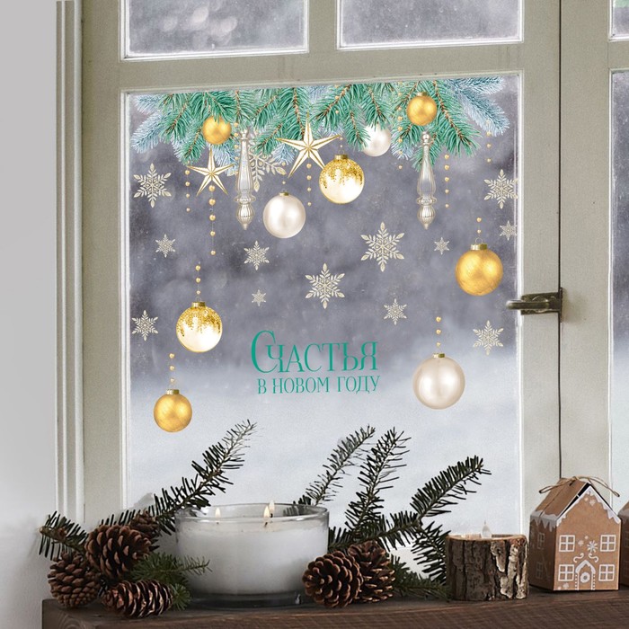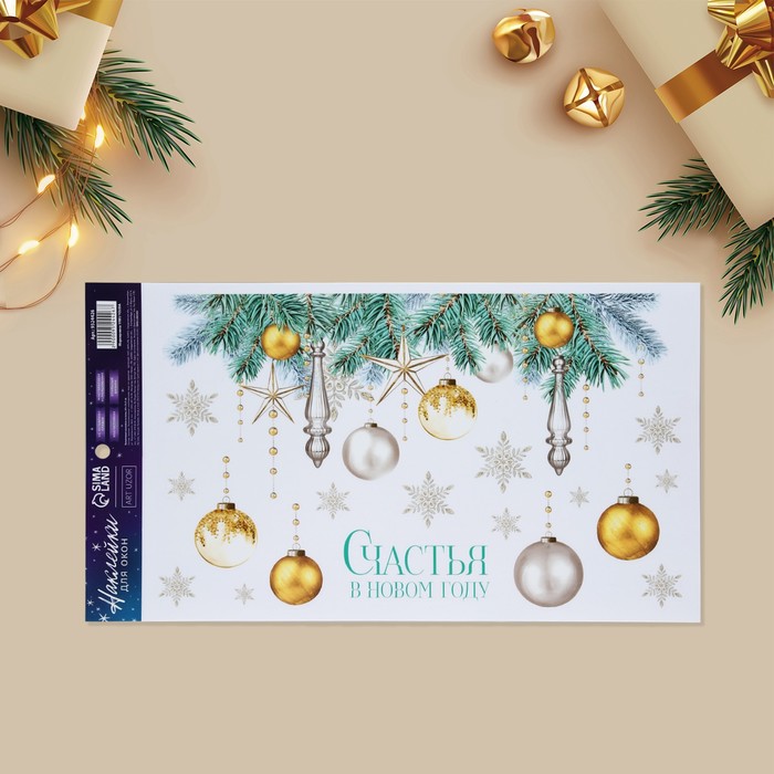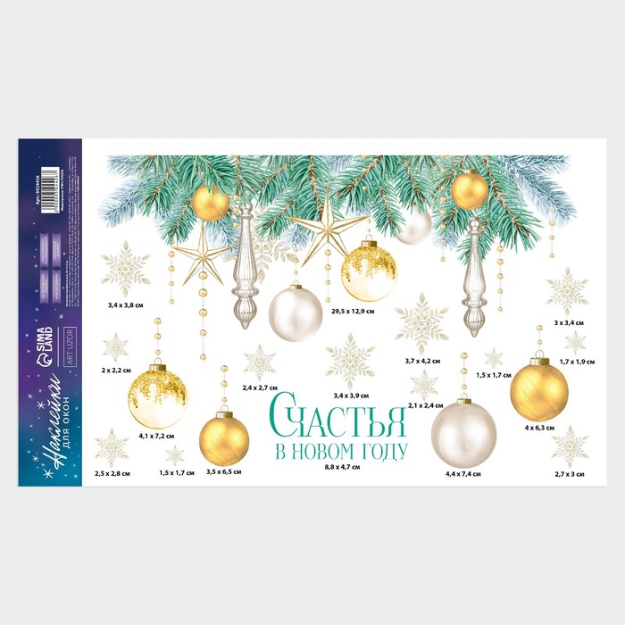 Наклейки новогодние на окна, виниловые «Счастья в Новом году», многоразовые, 20 х 34,5 см — Характеристики