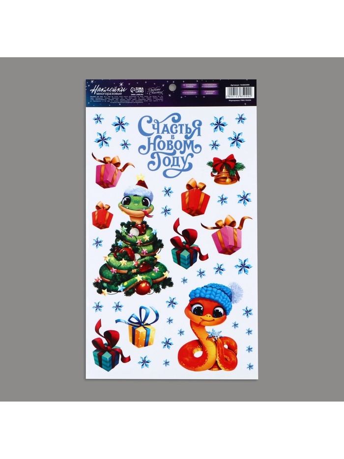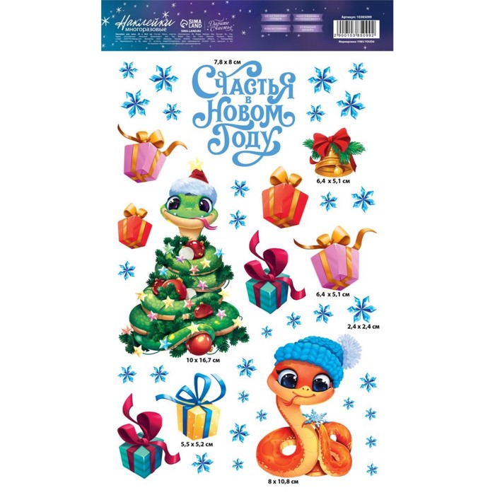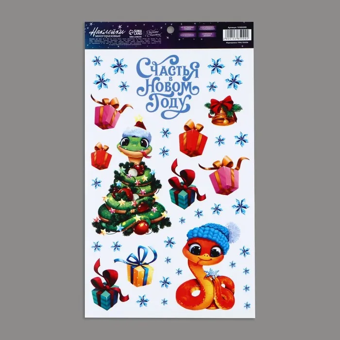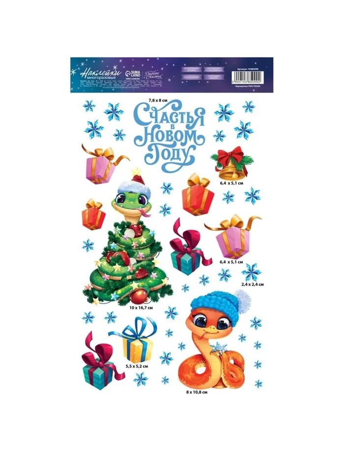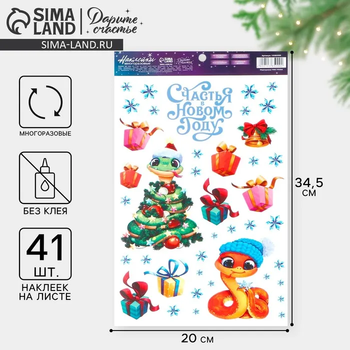 Наклейки новогодние на окна, виниловые «Счастья в новом году», многоразовые, 20×34.5 см — Характеристики
