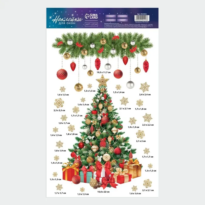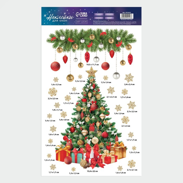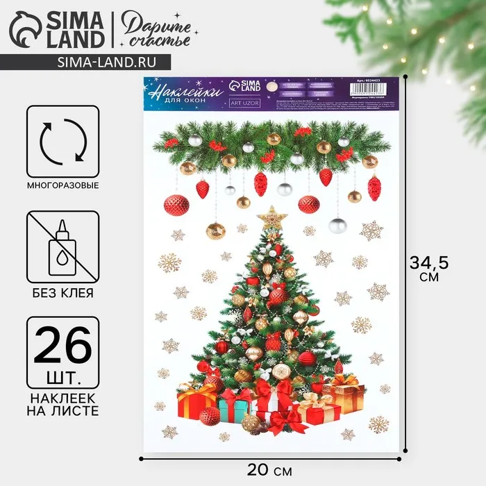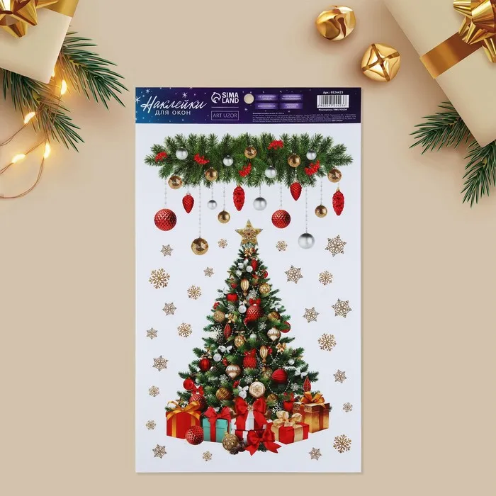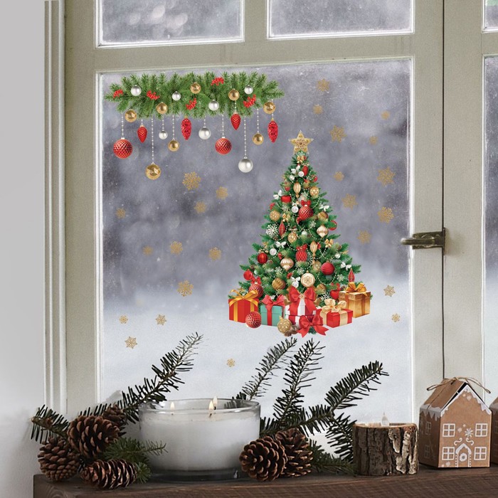 Наклейки новогодние на окна, виниловые «Сказочная ель», многоразовые, 20 х 34,5 см — Характеристики