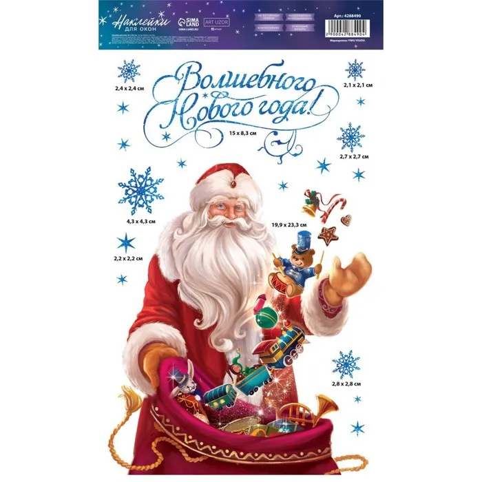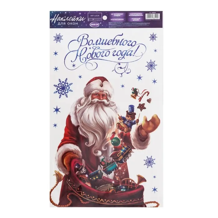 Наклейки новогодние на окна, виниловые «Волшебного Нового года», многоразовые, 20 х 34 см — Характеристики