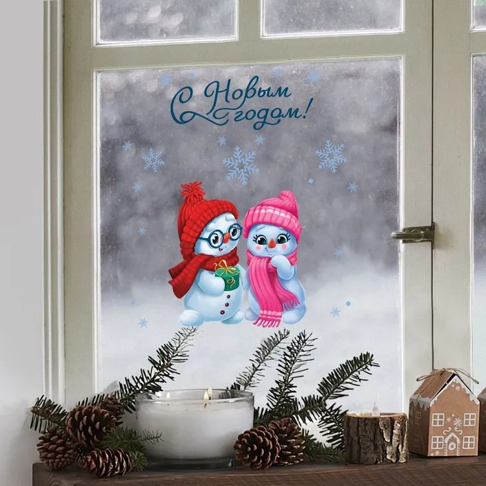Наклейки новогодние на окна, виниловые «Зимние друзья», многоразовые, 20 х 34,5 см — Характеристики