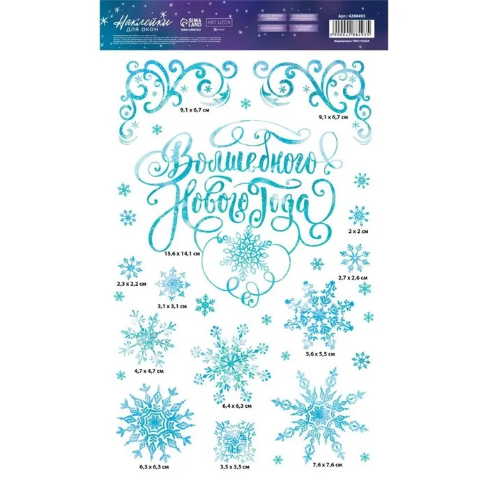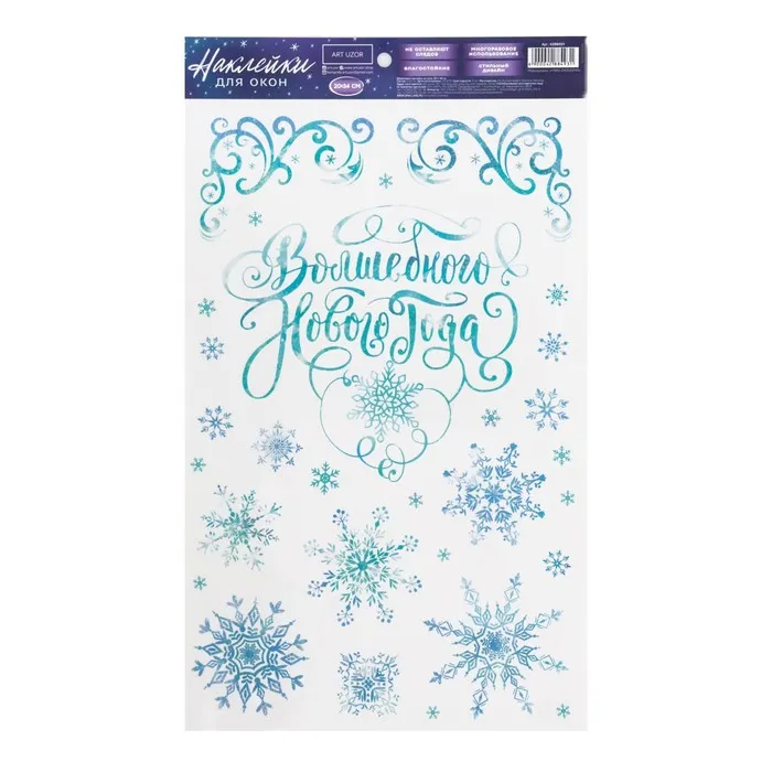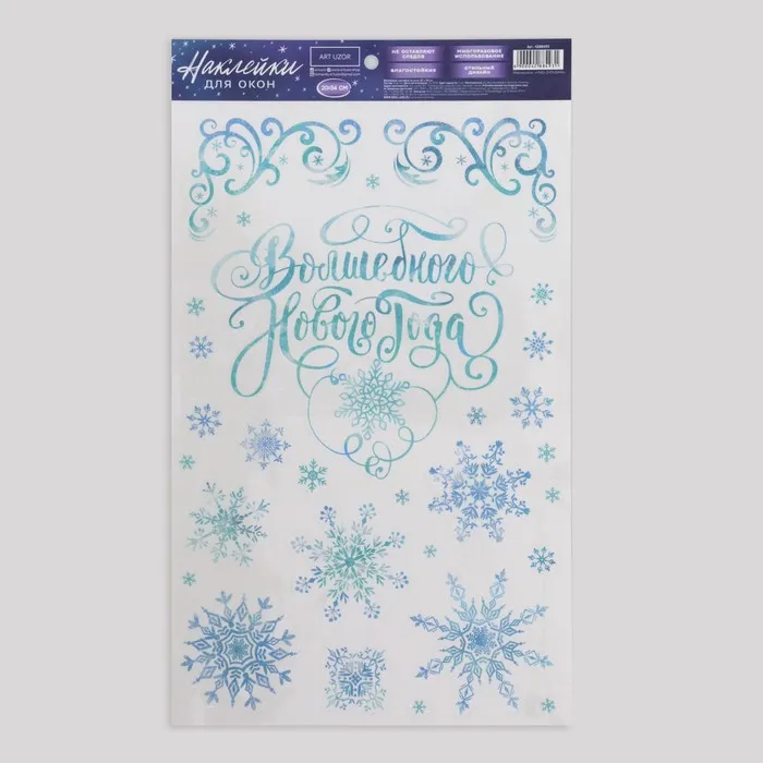 Наклейки новогодние на окна, виниловые «Зимние узоры», многоразовые, 20 х 34 см — Характеристики