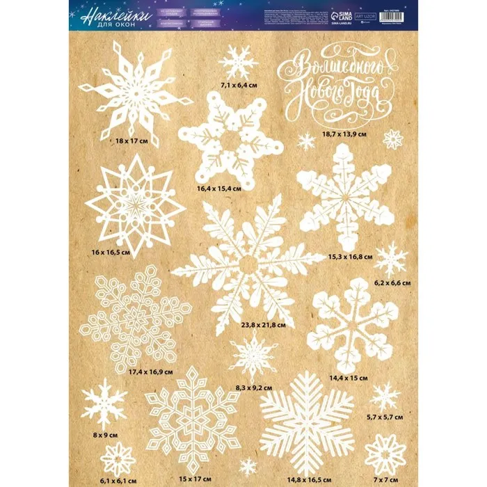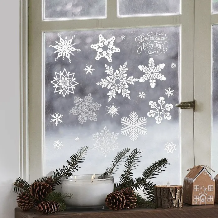 Наклейки новогодние на окна «Волшебные снежинки» , многоразовые, 50 х 70 см — Характеристики