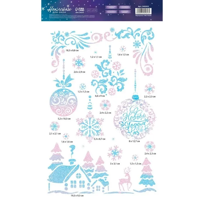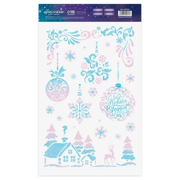 Наклейки новогодние на окна «Волшебный Новый год», многоразовые, 20 х 34 см — Характеристики