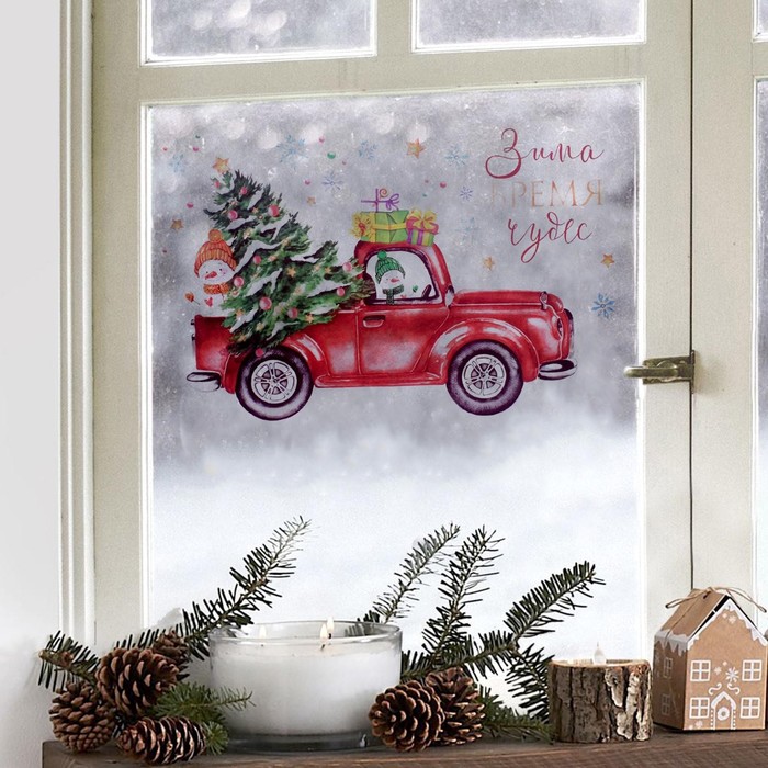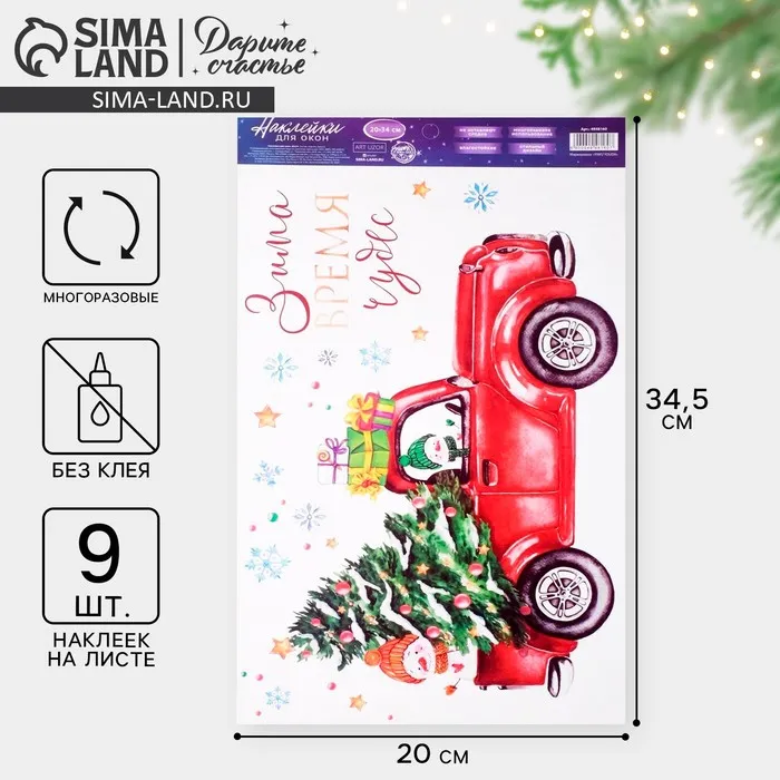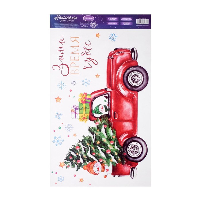 Наклейки новогодние на окна «Зима - время чудес», многоразовые, 20 х 34 см — Характеристики