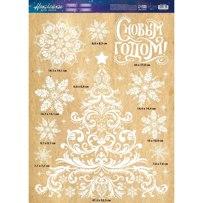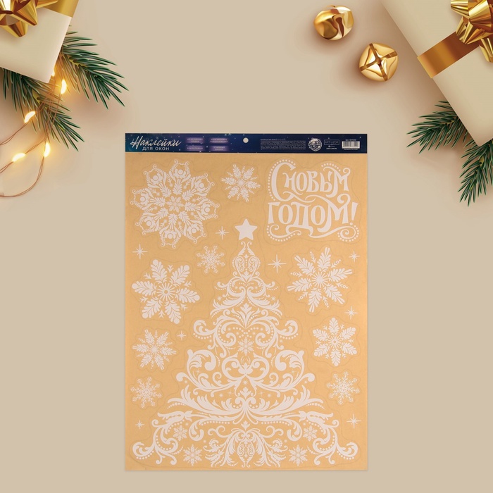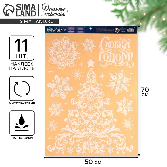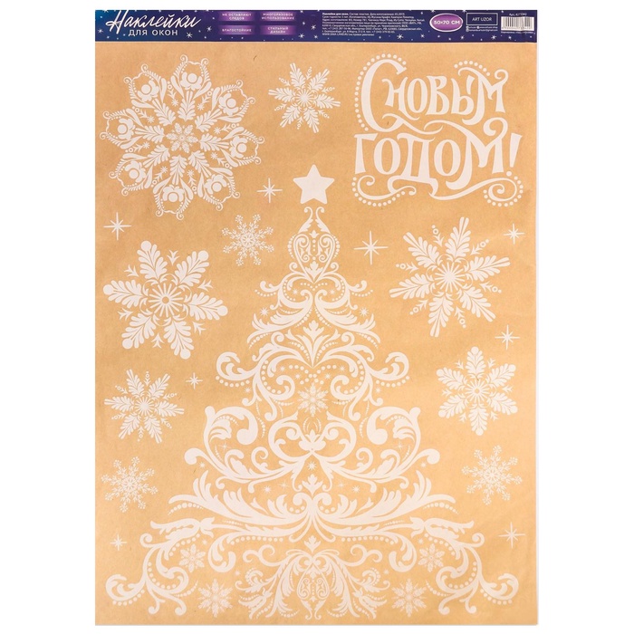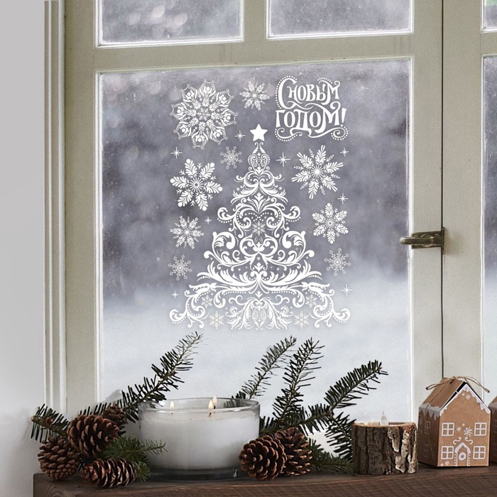 Наклейки новогодние на окна «Зимняя ёлочка», многоразовые, 50 х 70 см — Характеристики