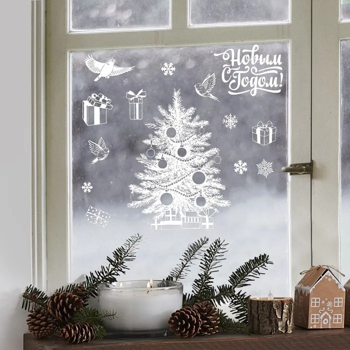 Наклейки новогодние на окна «Зимняя красавица», многоразовые, 50 х 70 см — Характеристики