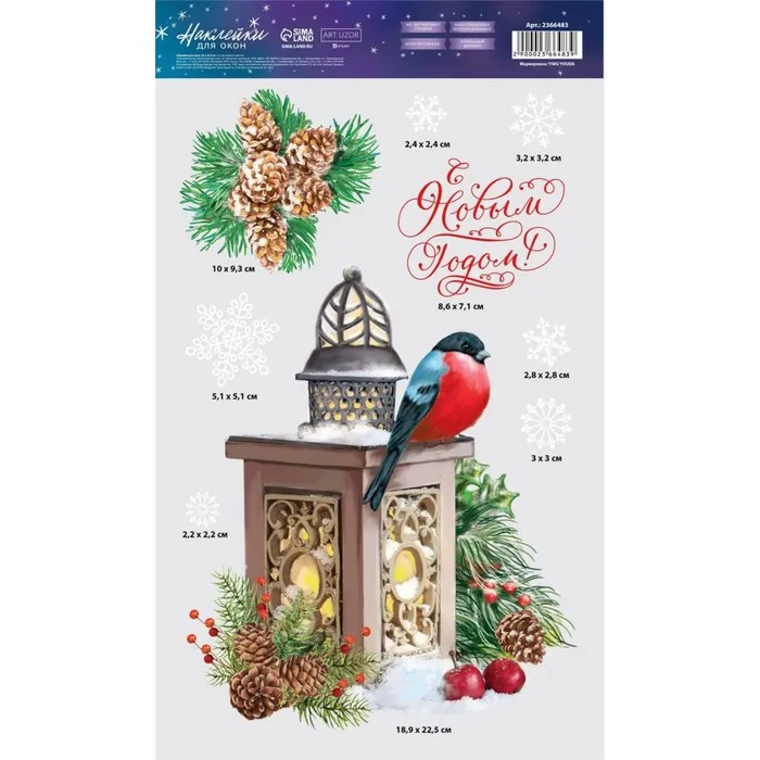Наклейки новогодние на окна «Зимняя сказка», многоразовые, 20 х 34 см — Характеристики