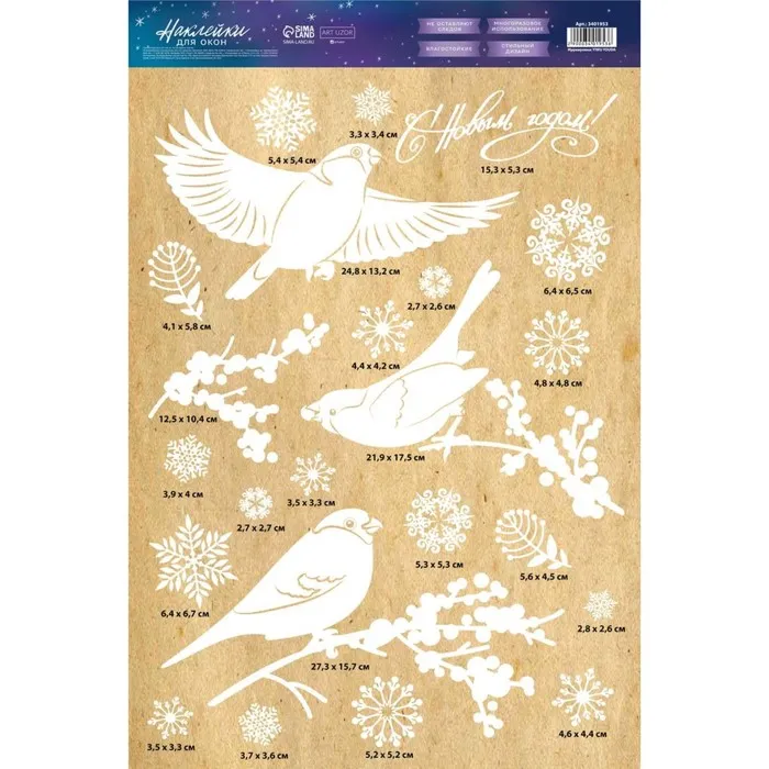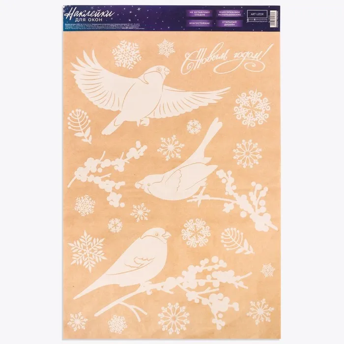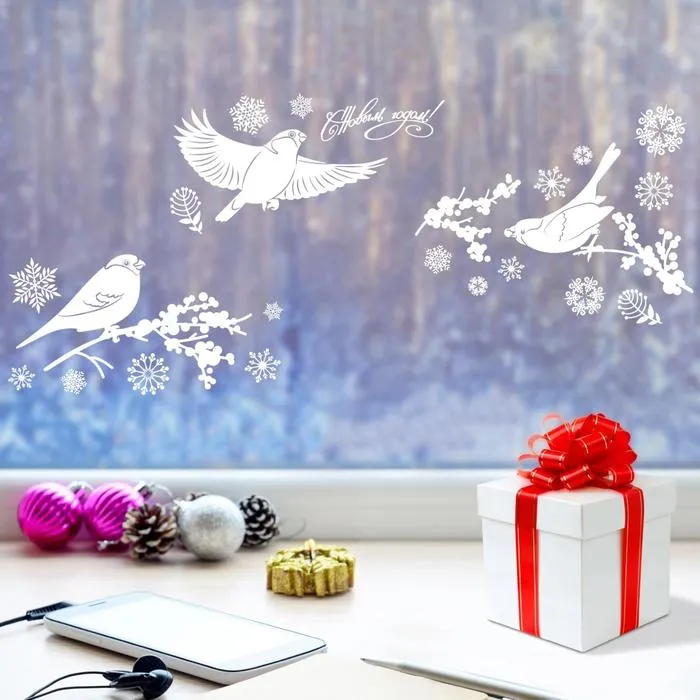 Наклейки новогодние на окна «Зимние птички» , многоразовые, 33 х 50 см — Характеристики