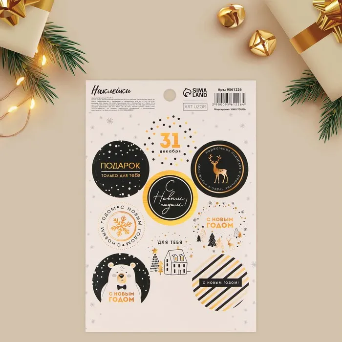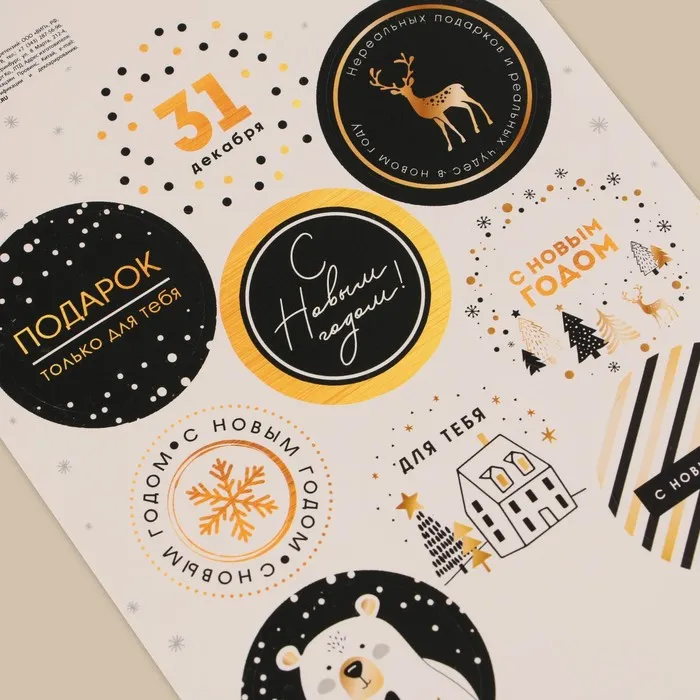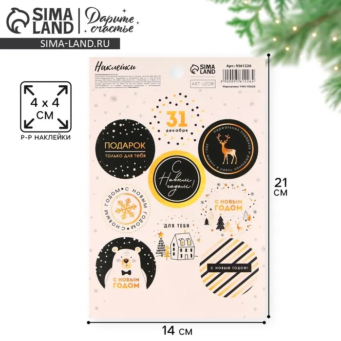 Наклейки новогодние на подарки «С Новым счастьем!», 14×21 см — Характеристики