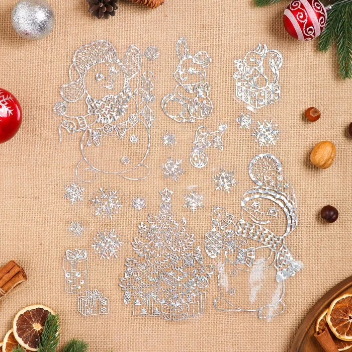 Наклейки новогодние «Новогоднее веселье», голографическая фольга, 49.3×33.6 см — Характеристики