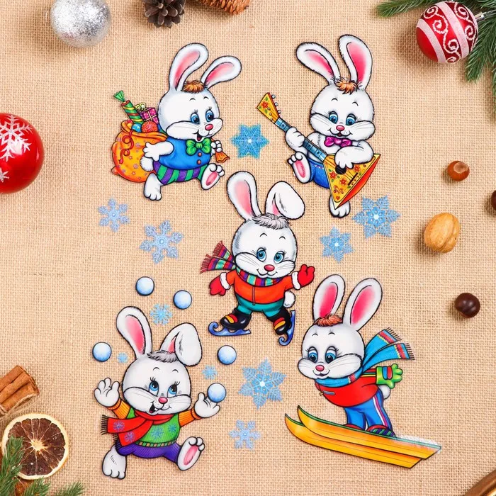 Наклейки новогодние «Новогодние зайчата» 49.3×33.6 см — Характеристики