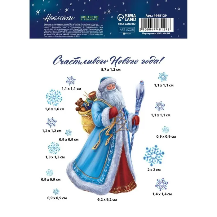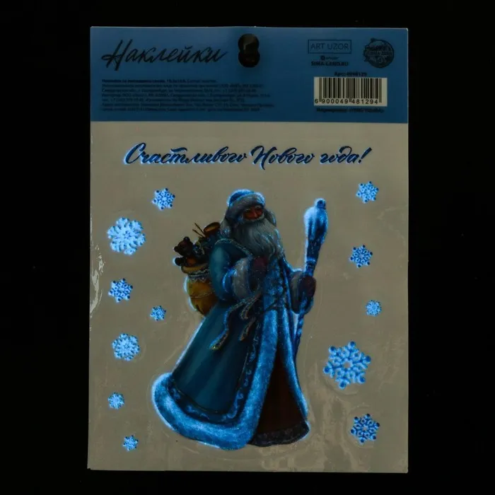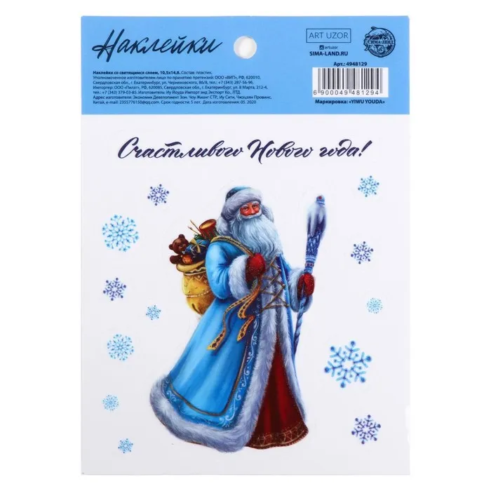 Наклейки новогодние со светящимся слоем «Дед Мороз», 10,5 х 14,8 см — Характеристики