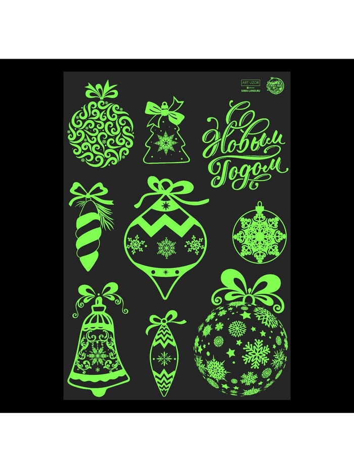 Наклейки новогодние светящиеся «С новым годом», 21×29.7 см — Характеристики