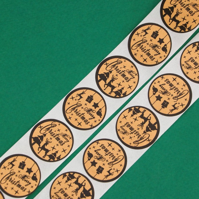 Наклейки новогодние в рулоне Merry Christmas, 500 шт., 2.5×2.5 см
