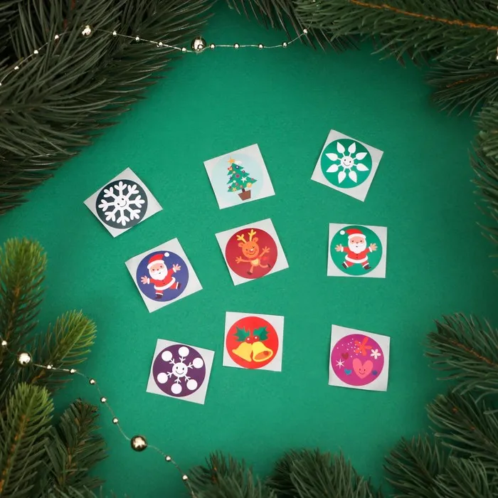 Наклейки выполнены в тематике Нового года, что делает их отличным выбором для создания праздничной атмосферы. Они могут быть использованы для украшения открыток, подарков, окон, стен, мебели и других предметов интерьера.