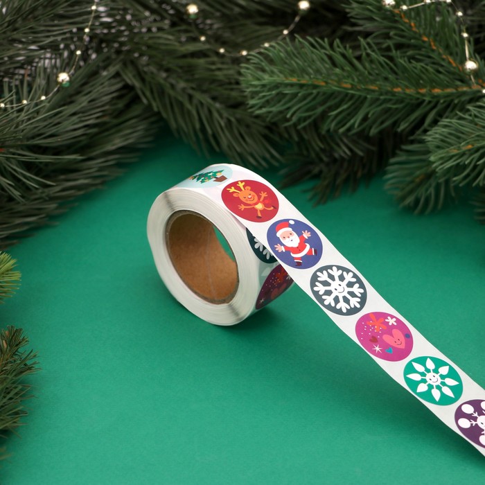 Наклейки новогодние в рулоне "Новогодний праздник", 500 шт, 2,5 х 2,5 см.