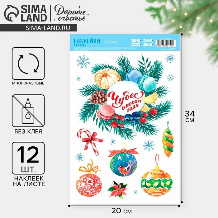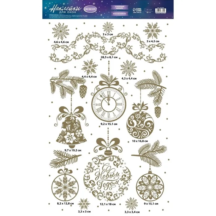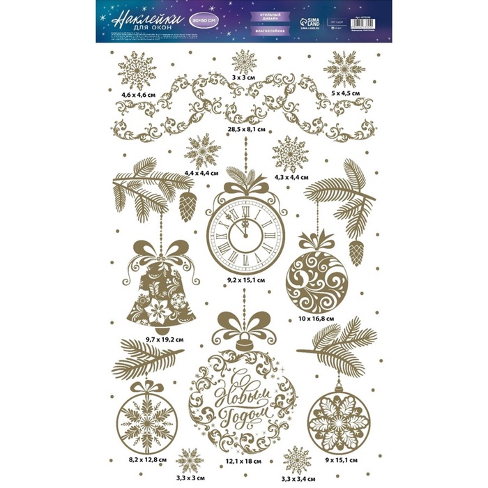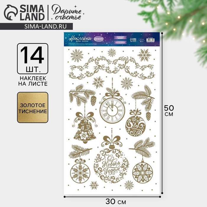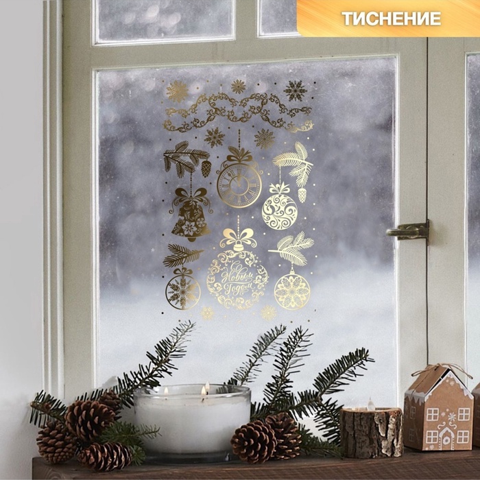 Наклейки новогодние виниловые с фольгированием «C Новым годом», 30 х 50 см — Характеристики