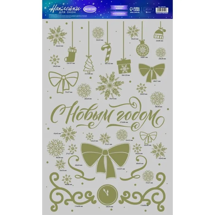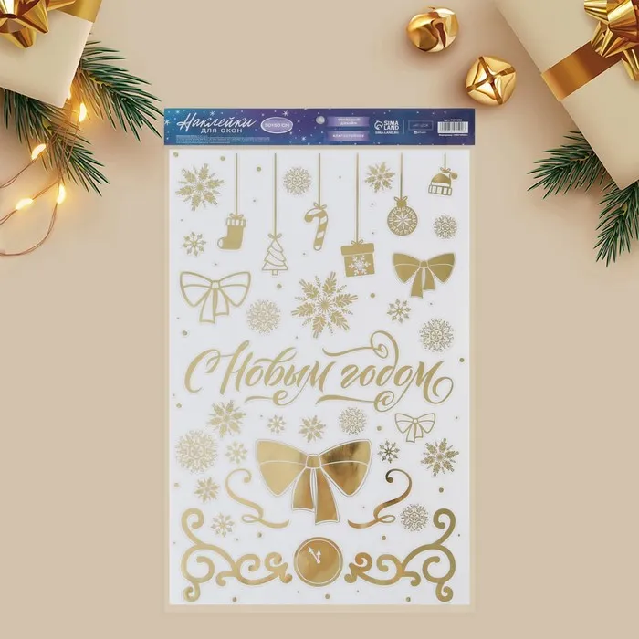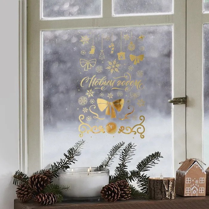 Наклейки новогодние виниловые с фольгированием «Праздник», 30 х 50 см — Характеристики