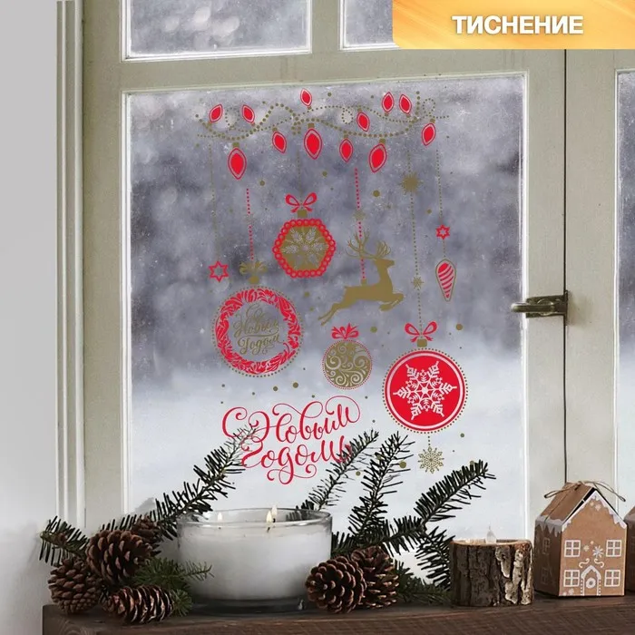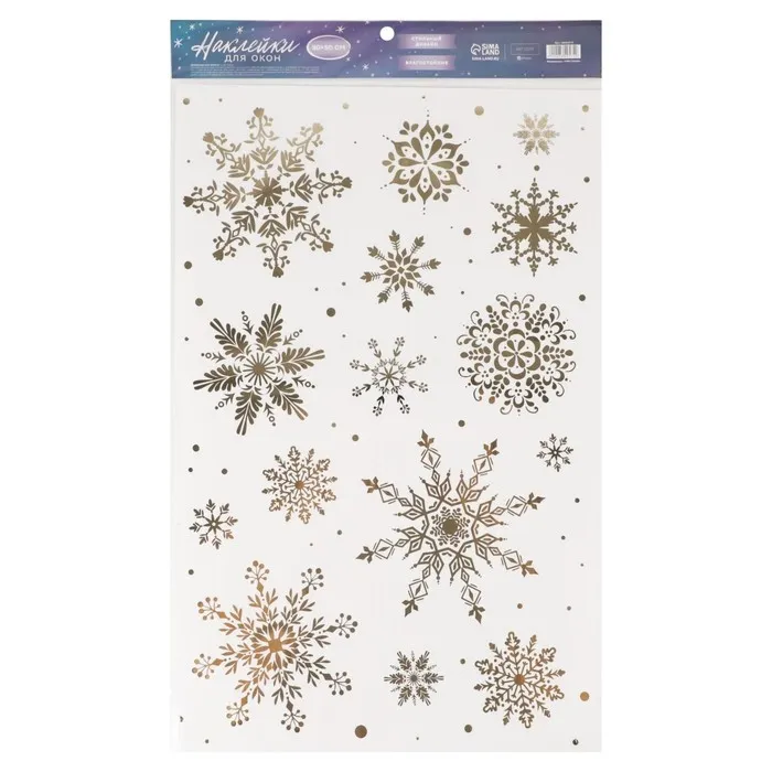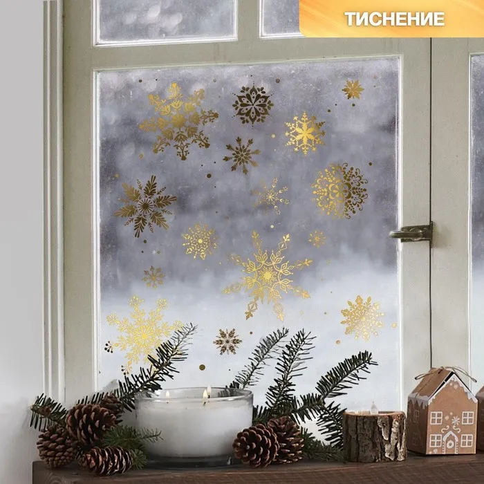 Наклейки новогодние виниловые с фольгированием «Снежинки», 30 х 50 см — Характеристики