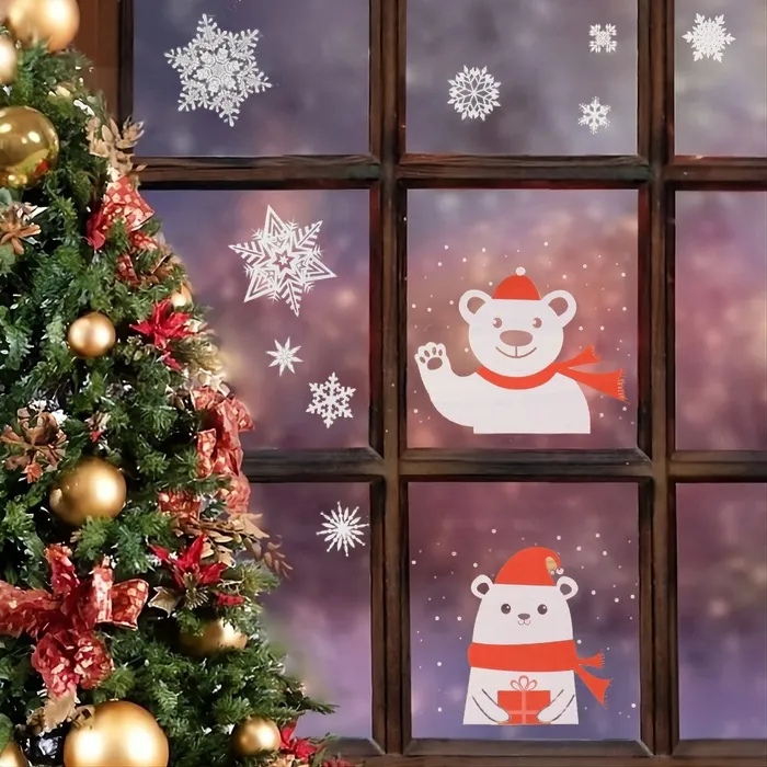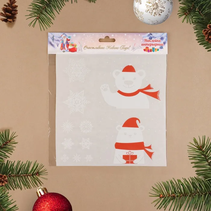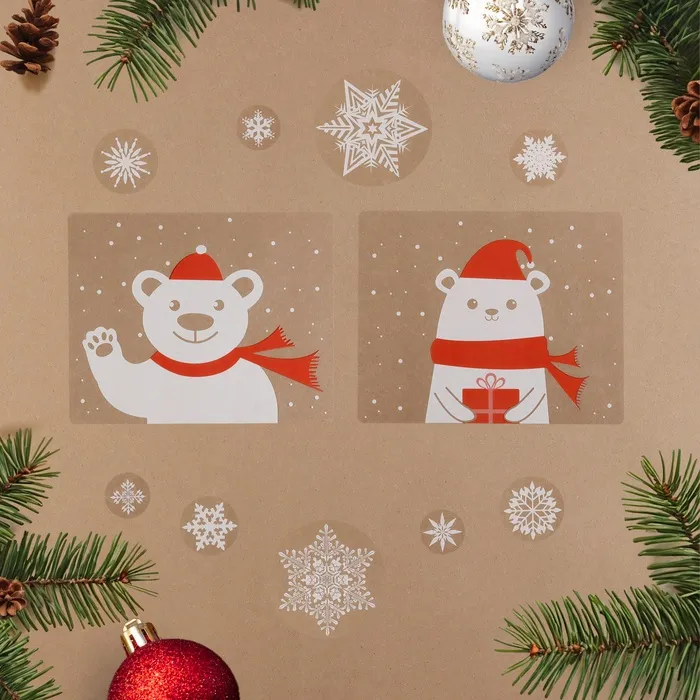 Наклейки новогодние «Зверята в красном шарфике», 34.3×35.6 см — Характеристики