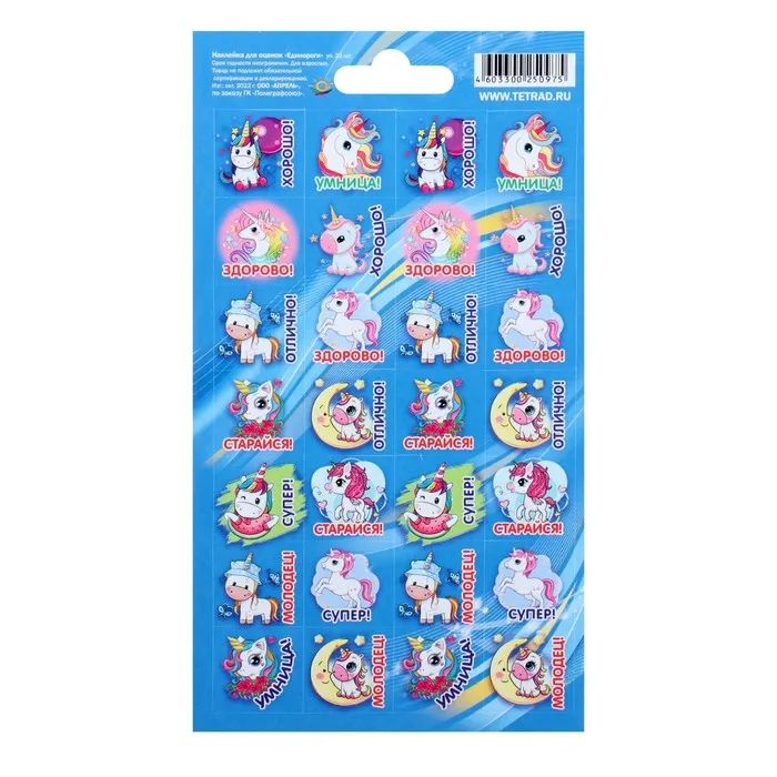 Наклейки-оценки детские «Единороги» 11×17 см
