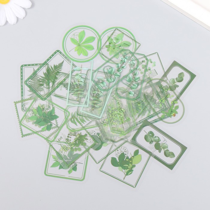 Наклейки для творчества "Теги - Зелёные листья" набор 30 шт 0,2х8х11 см