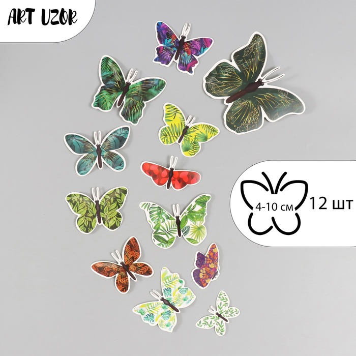 Бабочки картон "Листья" набор 12 шт h=4-10 см