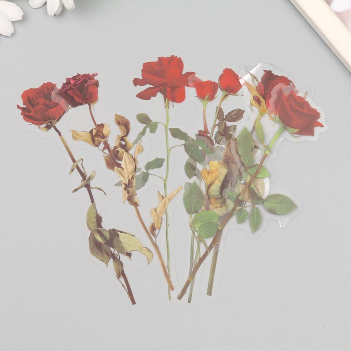 Наклейки пластик «Цветы и цитаты. Красные розы», набор 12 шт., 8.5×21.5×0.2 см