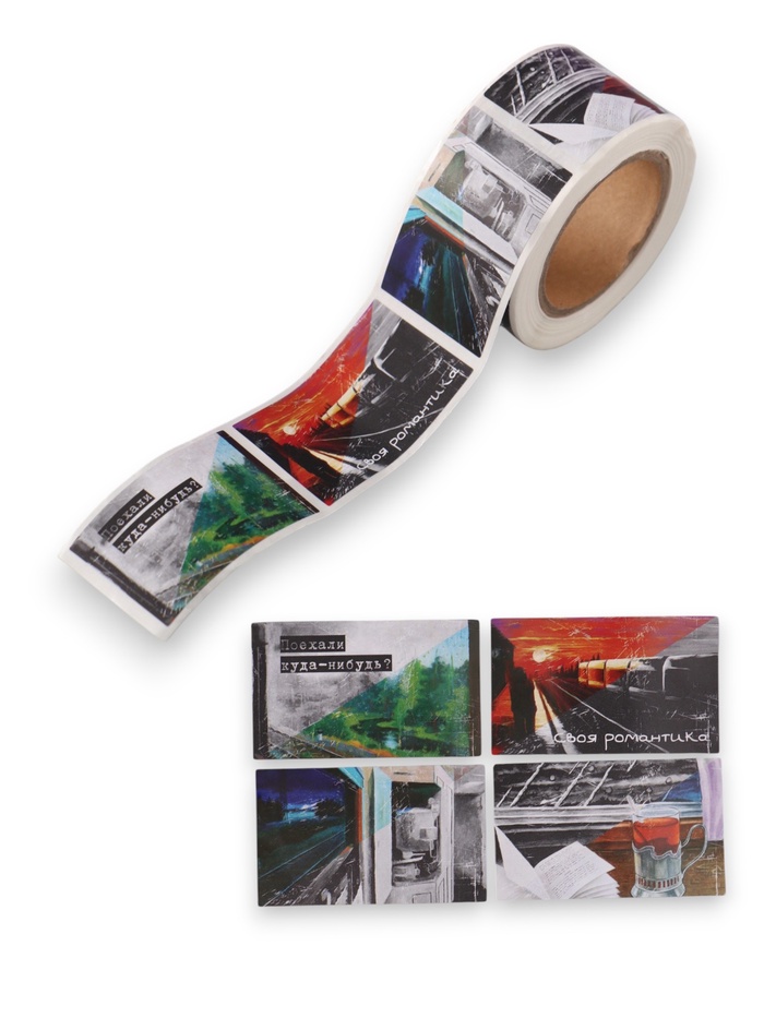 Наклейка бумага "Романтика поездов" 3х5 см 200 шт в рулоне