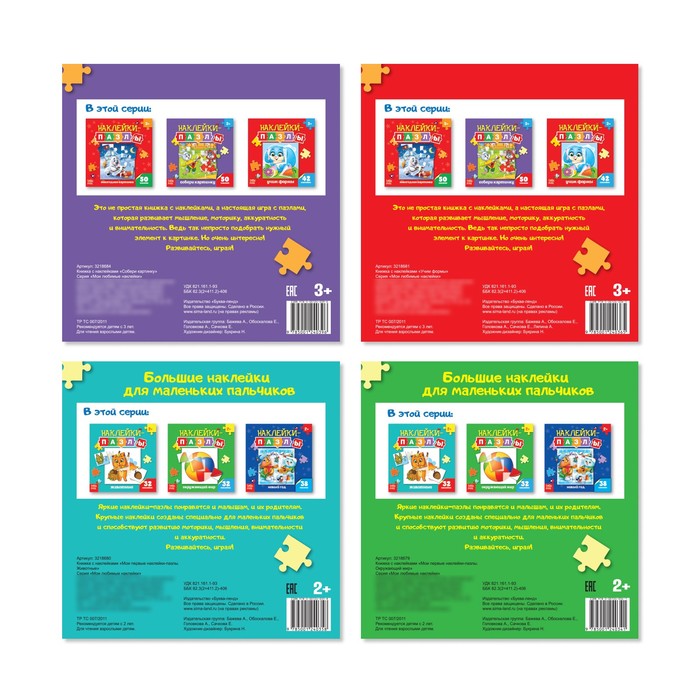 Наклейки - пазлы детские, набор 4 шт. по 12 стр. — Характеристики