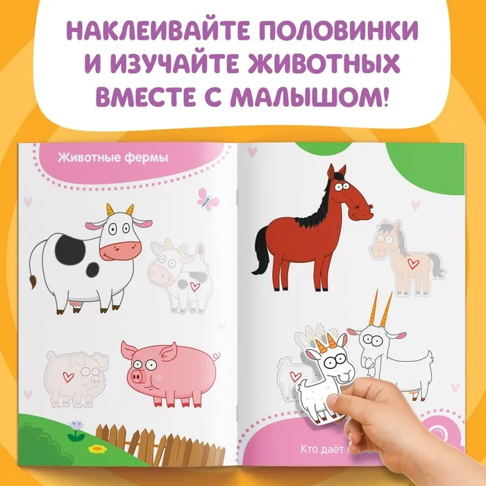 Изучайте животных и помогайте мамам найти своих малышей, решайте тематические задания с помощью специальных наклеек-половинок. Интерактивные игры с красочными картинками способствуют развитию цветового восприятия, визуального и логического мышления. Привлечение ребёнка в творческую деятельность с самого раннего возраста — это занимательно и просто!