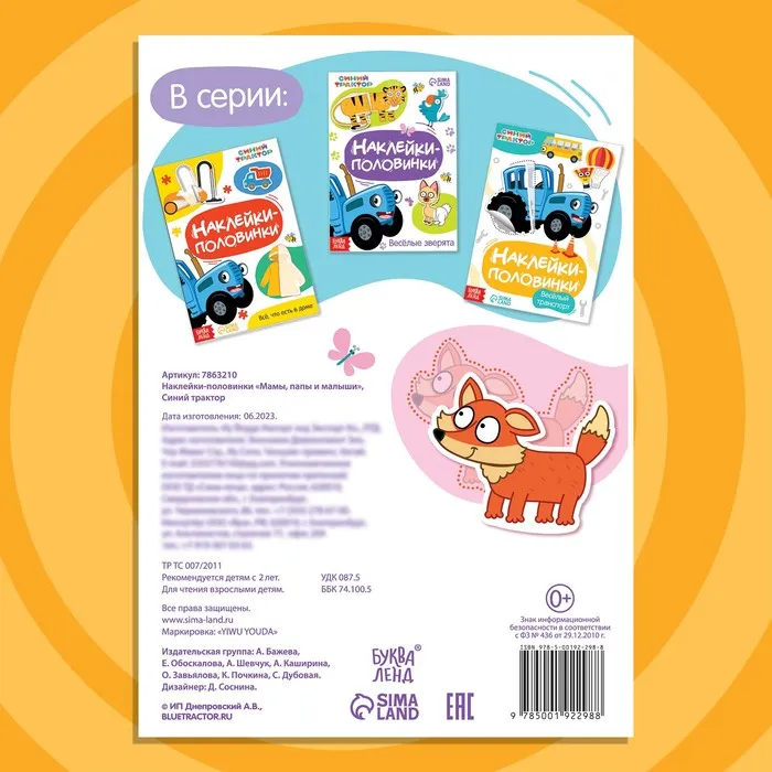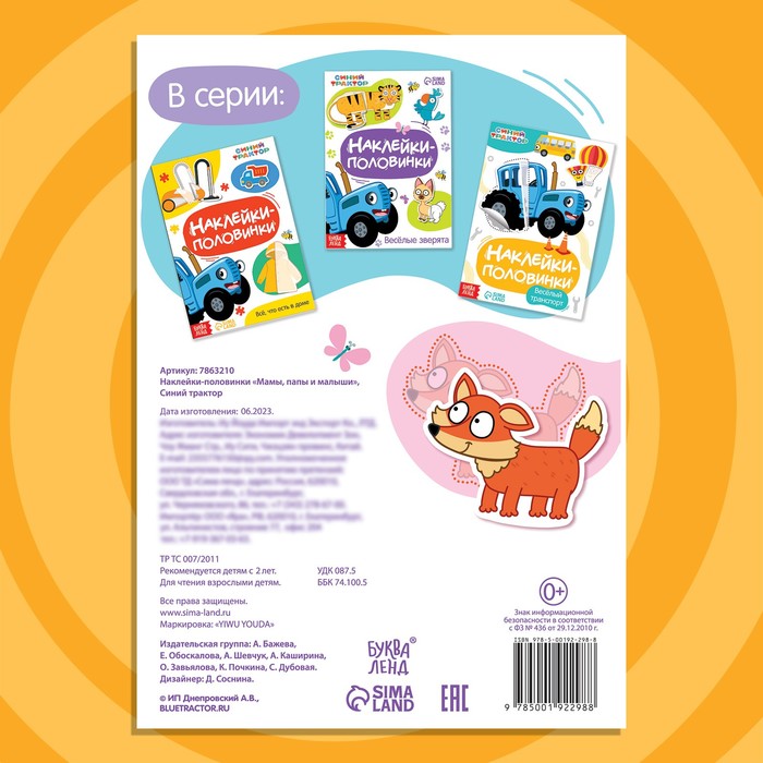 Наклейки - половинки «Мамы, папы и малыши», 16 стикеров, Синий трактор — Характеристики