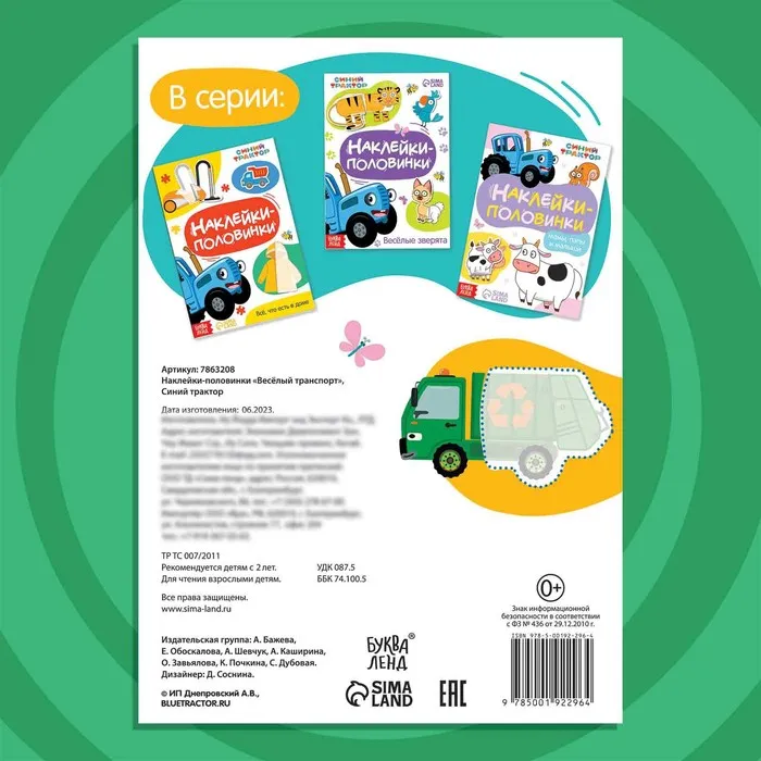 Набор наклеек «Весёлый транспорт» — это возможность для ребёнка решить интересные задачки вместе с Синим трактором!