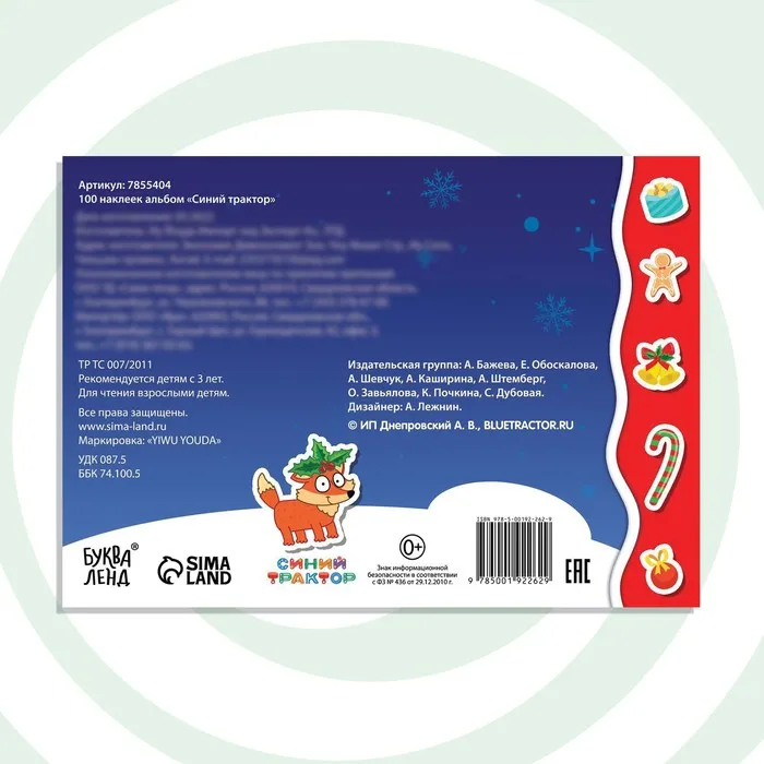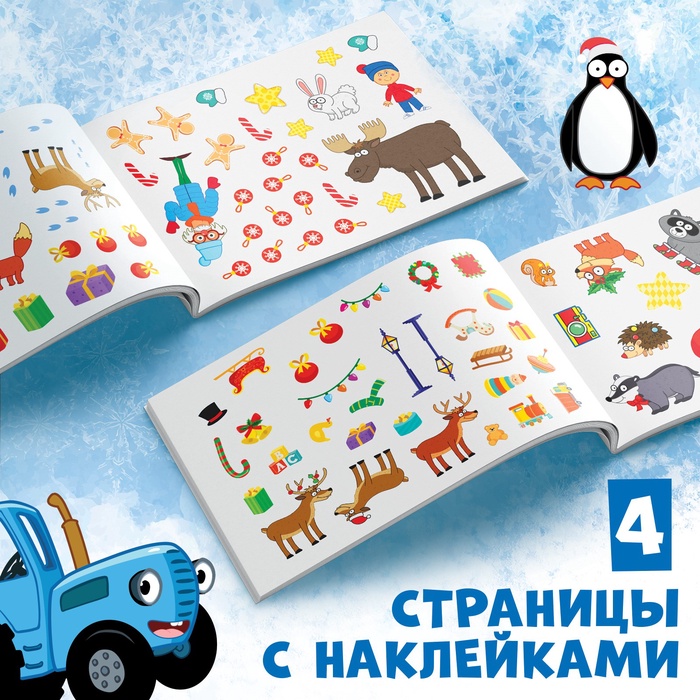 Наклейки с заданиями в альбоме «Новый год», стикербук А5, 12 стр., Синий трактор — Характеристики