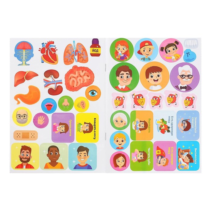 Книга с наклейками «Секреты тела человека» — это увлекательное путешествие в мир анатомии для детей от 3 лет. С помощью ярких аппликаций и весёлых заданий ребёнок узнает, как устроено человеческое тело, и познакомится с его основными функциями. Идеальный способ расширить кругозор и пробудить интерес к науке!