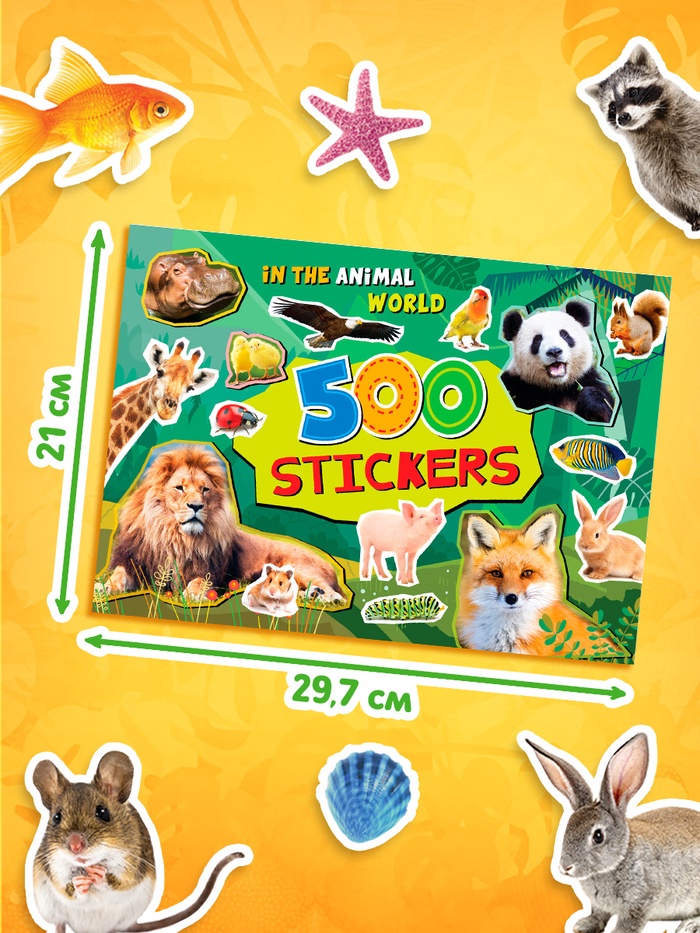 • 500 наклеек с изображениями животных, подходящих для создания аппликаций и оформления различных поверхностей.