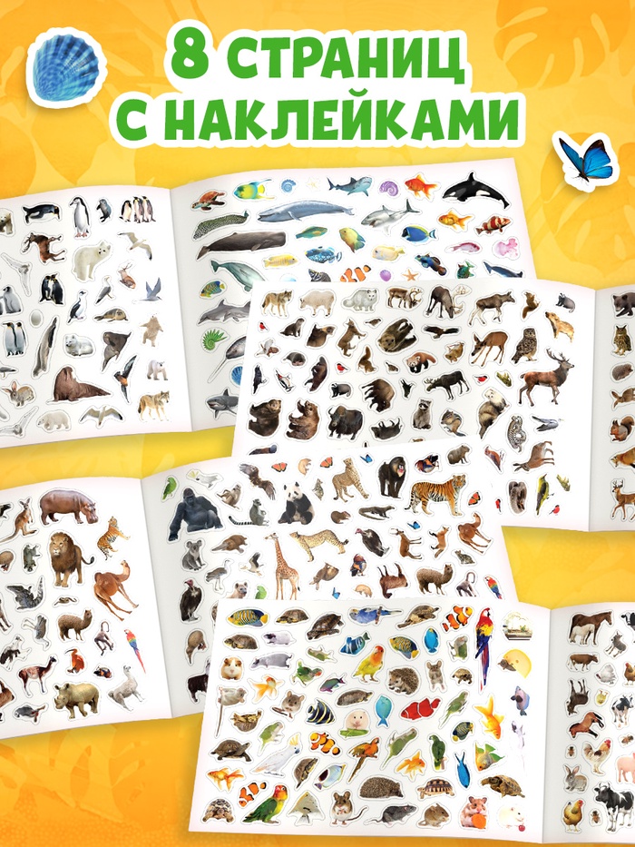 Наклейки «Стикербук. Животные», 8 стр., 500 стикеров