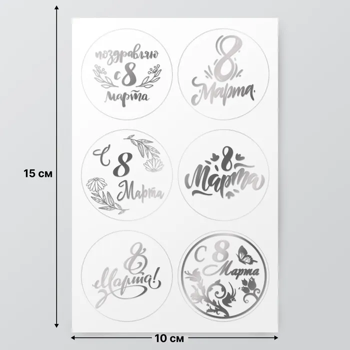 Наклейки (стикеры) "8 марта" 10х15 см, цвет серебро, 5-318 — Характеристики