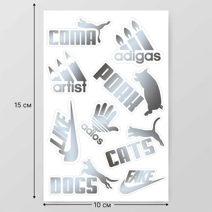 Наклейки (стикеры) "Логотипы" 10х15 см, цвет серебро, 5-325