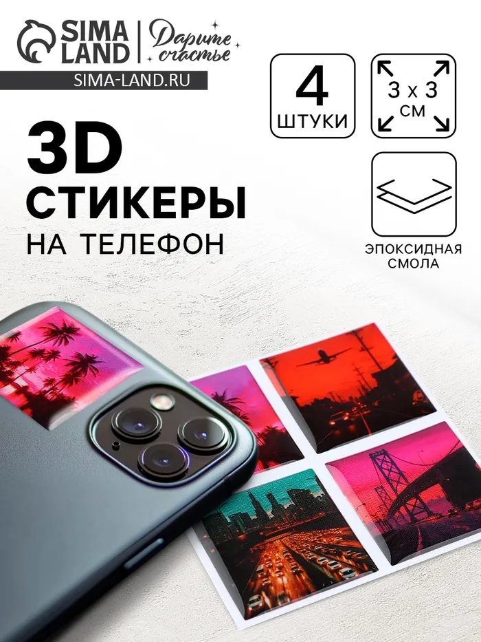 Наклейки-стикеры на телефон, объемные 3D, «Слушай своё сердце», 4 шт, 3 х 3 см — Характеристики