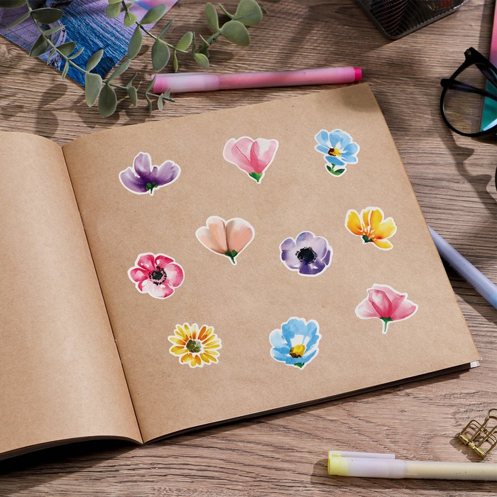 Наклейки-стикеры, набор,«Цветы», 5 х 5 см
