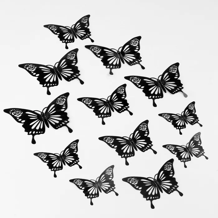 В этот набор входят 12 чёрных бабочек, которые станут отличным выбором для декоративного оформления интерьеров и создания праздничной атмосферы. Бабочки лёгкие и прочные, поэтому их можно использовать для украшения стен, мебели и оформления мероприятий.