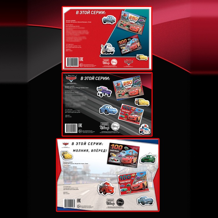Наклейки в альбоме 100 и 250 шт. «Друзья», 3 шт., Тачки — Характеристики