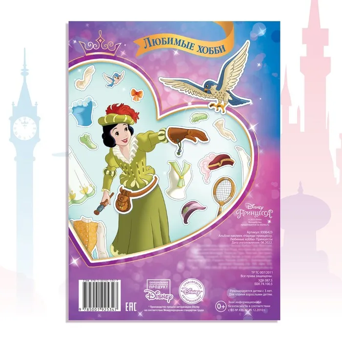 Наклейки в альбоме «Наряди принцессу. Любимые хобби», 12 стр., А5, Принцессы — Характеристики