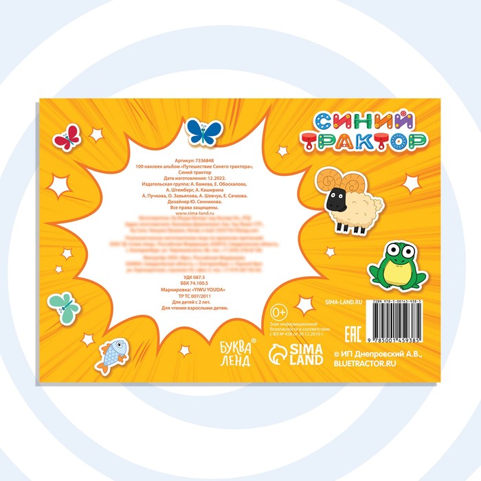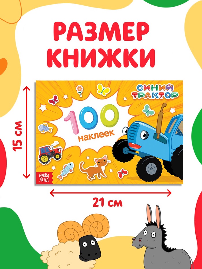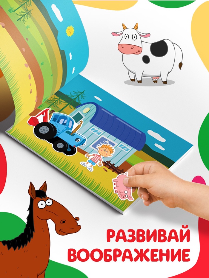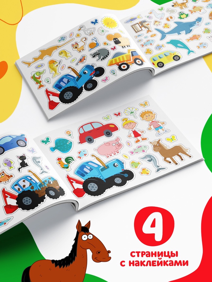 - 100 ярких наклеек с изображениями персонажей и элементов из мультфильма «Синий трактор».